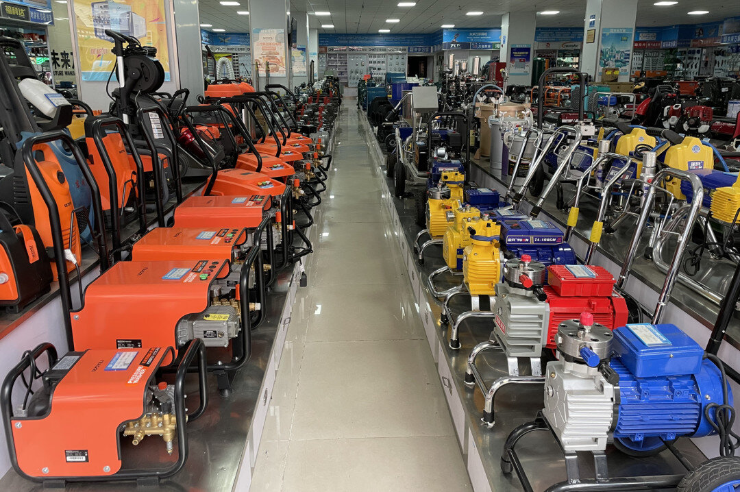 好一新五金机电市场内某店铺整齐陈列各类商品。