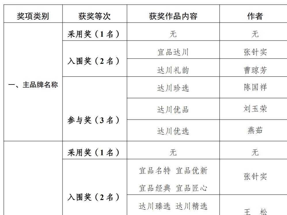 关于达川名特优新产品特色包装品牌名称、宣传口号及形象标识征集结果的公告