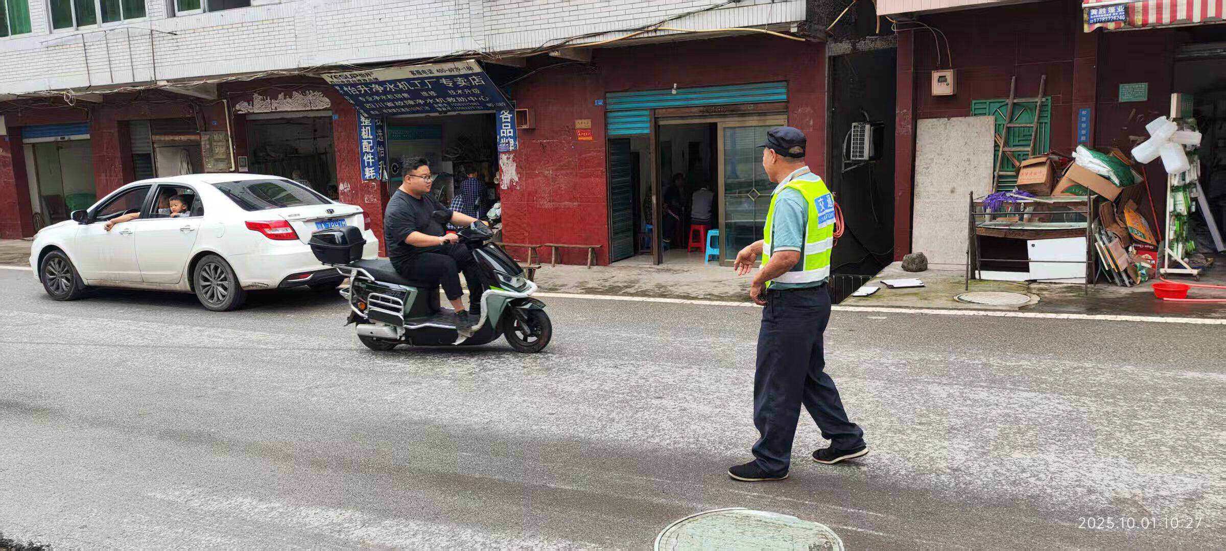 中秋国庆期间,桥湾镇迎来车流高峰。为保障群众出行安全顺畅,全体党员干部通过“定点值守+动态巡逻”织密交通安全网,以“时时放心不下”的责任感,守护每一条归家路。