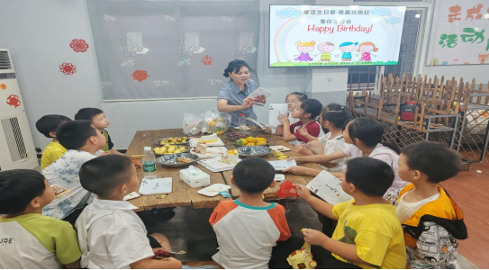 活动临近尾声,志愿者为孩子们庆祝了集体生日会,孩子们手捧着为他们每人精心设计的生日卡,脸上洋溢着自信的笑容。
