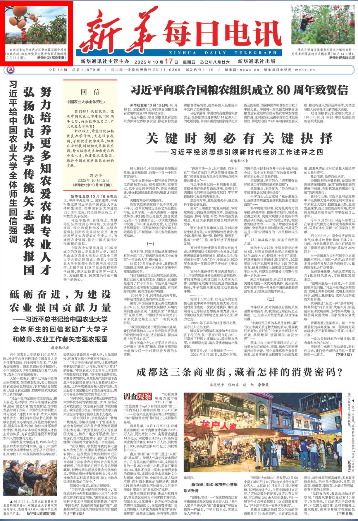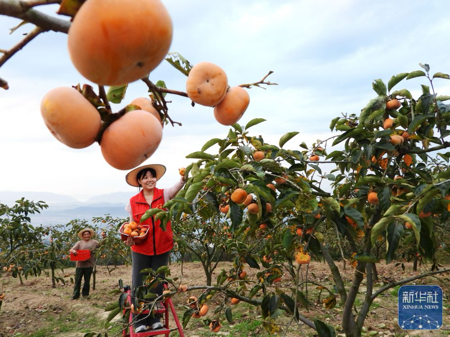 10月11日,在四川省达州市达川区景市镇茶园寺村裕祥家庭农场,柿农和党员志愿者加紧采摘甜柿。新华社发(邓良奎摄)