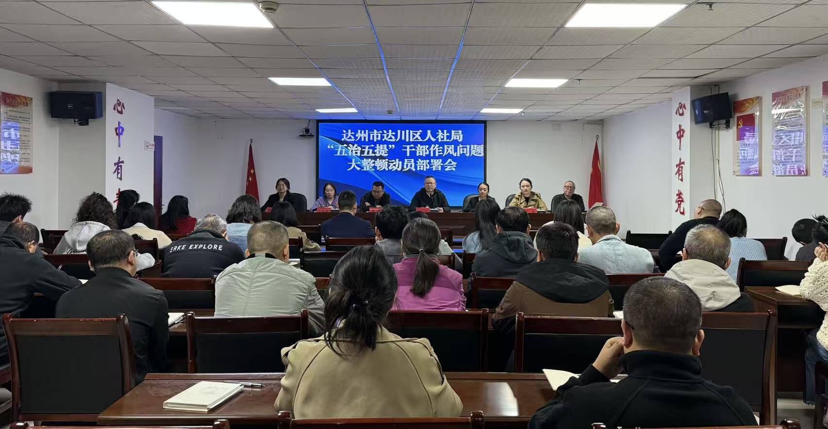 10月28日,达川区人社局召开“五治五提”干部作风问题大整顿动员部署会,区人社局党组书记、局长何三均主持会议并讲话,局班子成员、局机关全体职工参加了会议。