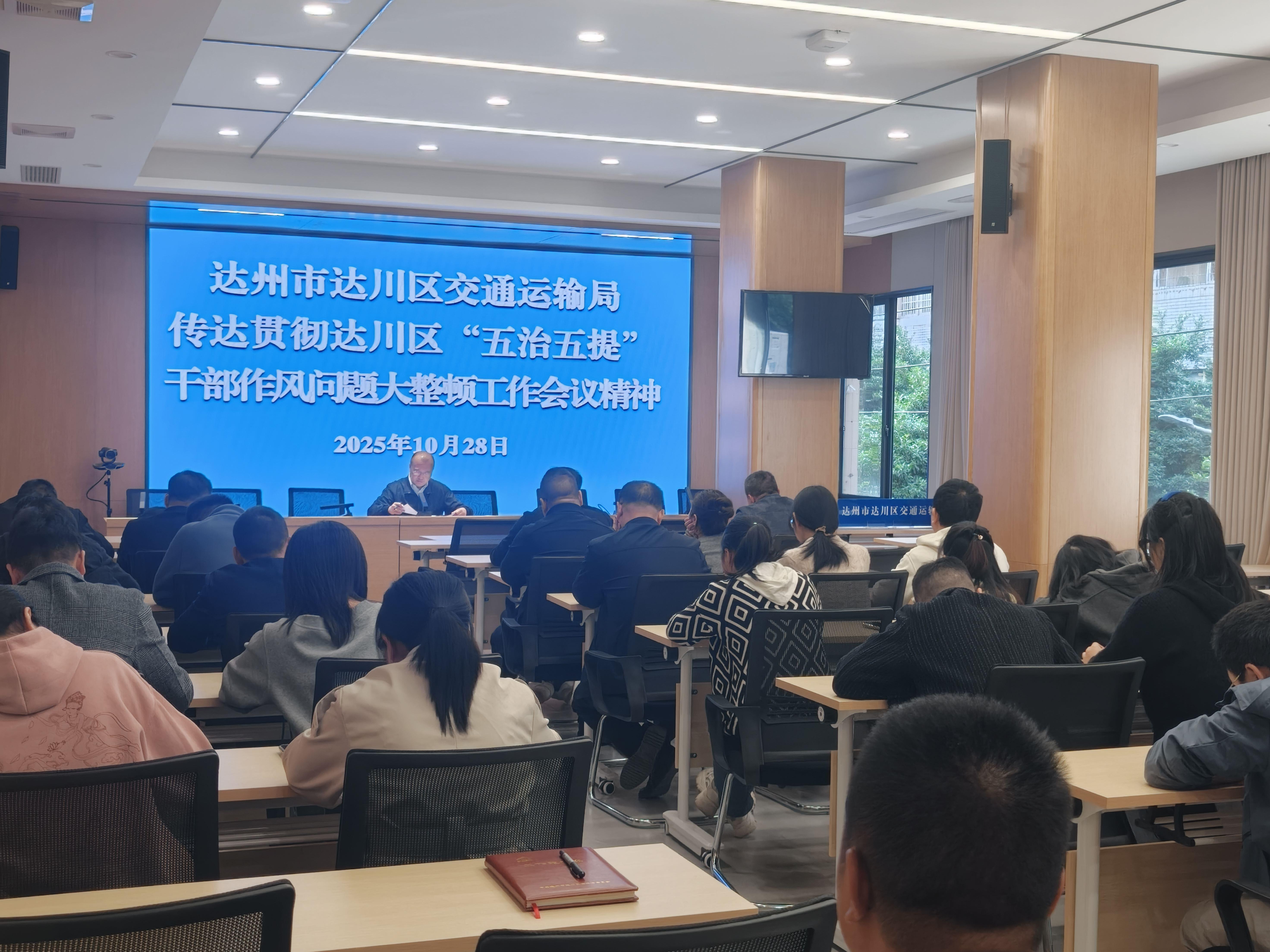 10月28日,达川区交通运输局组织召开全区交通运输系统“五治五提”干部作风问题大整顿动员部署会。局党组书记、局长主持会议并作动员讲话,局领导班子成员、机关全体干部职工及局属各单位主要负责人参加会议。