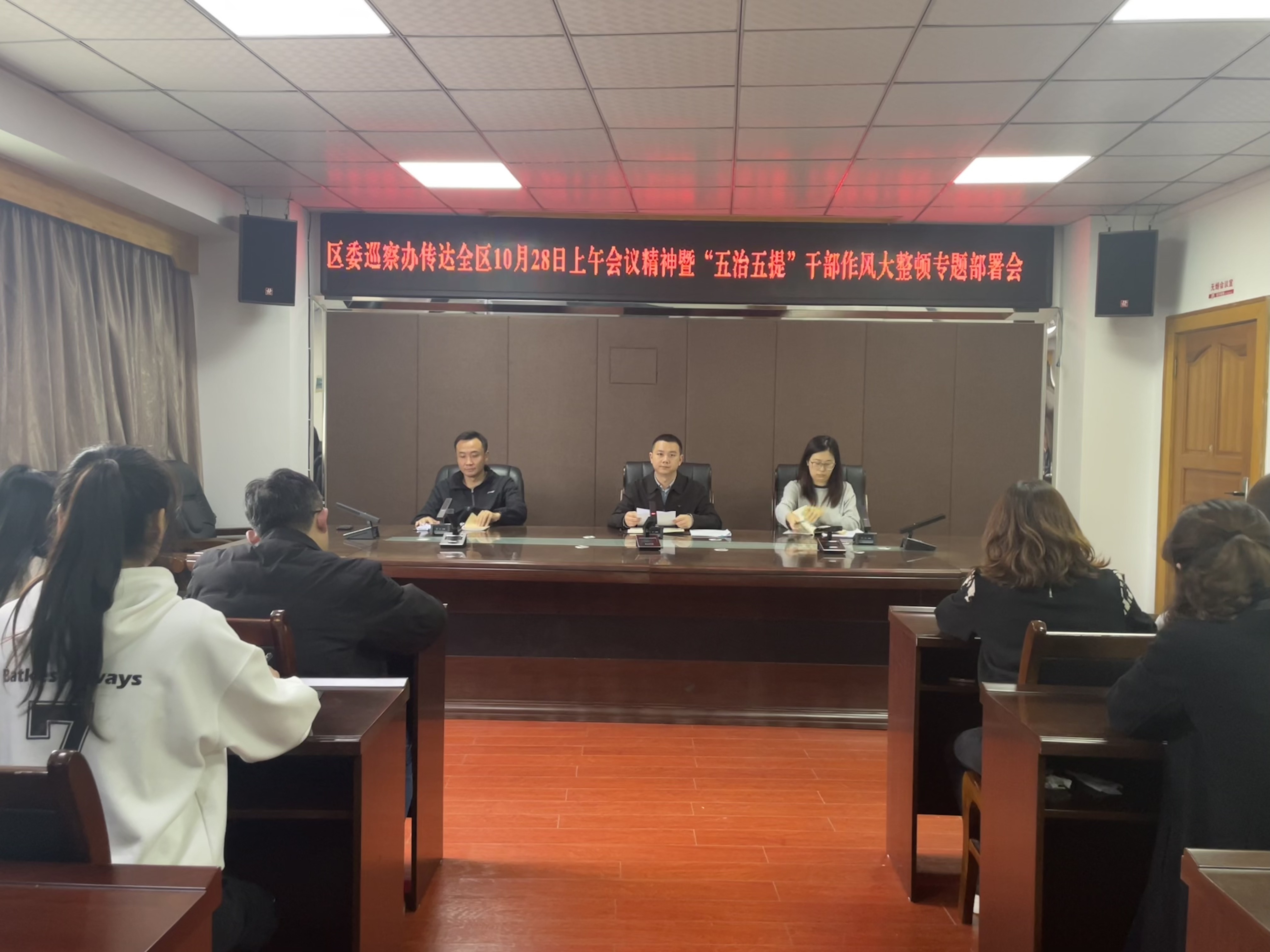 10月28日,区纪委常委、区委巡察办主任武志坚主持召开专题会议,传达学习全区抓项目促投资进一步提振消费工作调度会暨“双争双创”大比拼活动2025年第三次会议精神,并对“五治五提”干部作风问题大整顿工作进行动员部署。