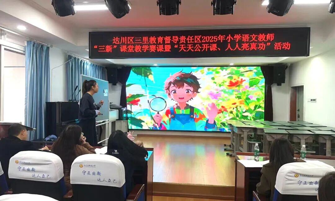 为深入践行“新课程方案、新课标、新教材”理念,助力教师精准把握教材内涵、推动课堂教学提质增效,近日,达川区三里教育督导责任区2025年小学语文教师“三新”课堂教学赛课暨“天天公开课、人人亮真功”活动在达川区新达小学成功举办。