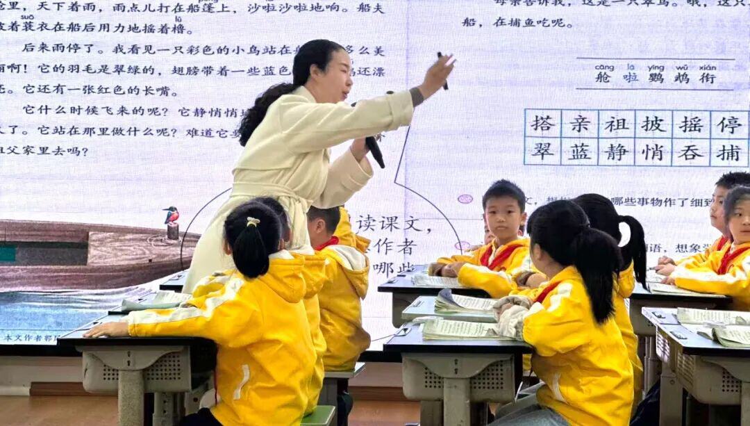 在课堂展示中,“科技赋能”成为一大亮点。参赛教师巧妙运用AI技术,通过动态影像还原翠鸟搭船的生动场景,将静态文字转化为直观可感的画面;创新引入“虚拟解说”互动形式,引导学生以“小观察员”身份梳理课文内容,在趣味实践中锻炼归纳能力。