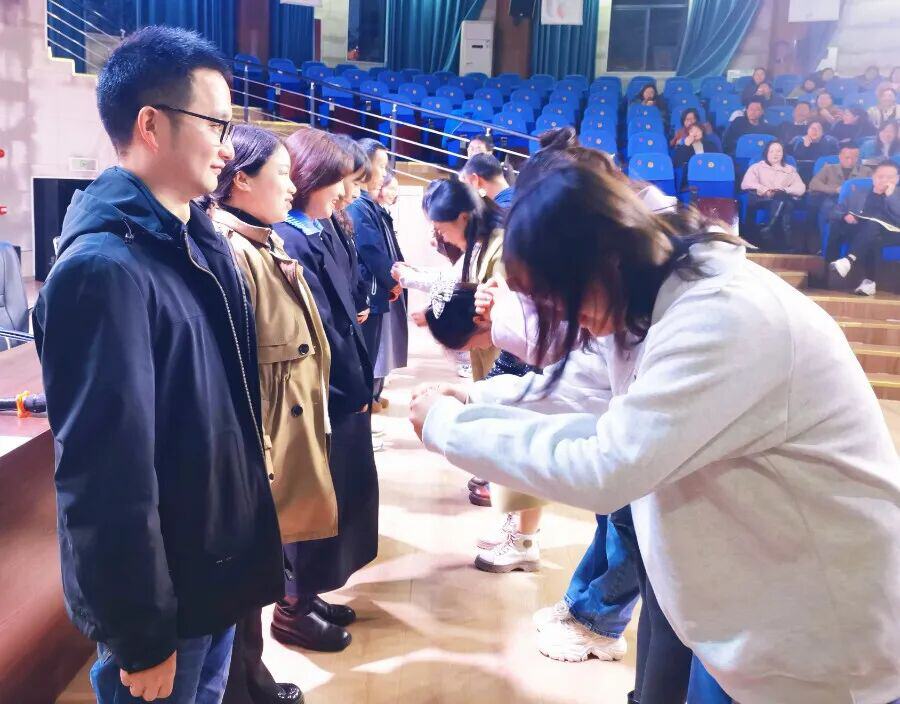 随后颁发了聘书与礼品。聘书虽轻,却承载着沉甸甸的责任;礼品虽简,满含着学校对骨干教师的认可与感恩,这份心意让在场每一位老师都倍感温暖。