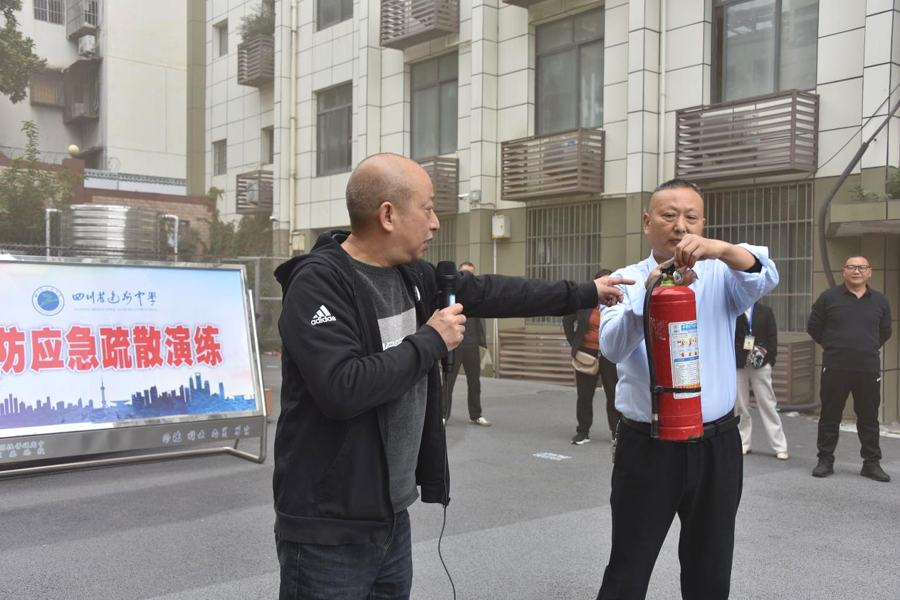 随后,安全老师现场讲解并演示了干粉灭火器的正确使用方法,部分学生踊跃参与实操,将理论知识转化为实战技能。他们熟练地拔掉保险销,握住喷管,对准火源根部喷射,动作规范、一气呵成,展现了良好的消防技能。