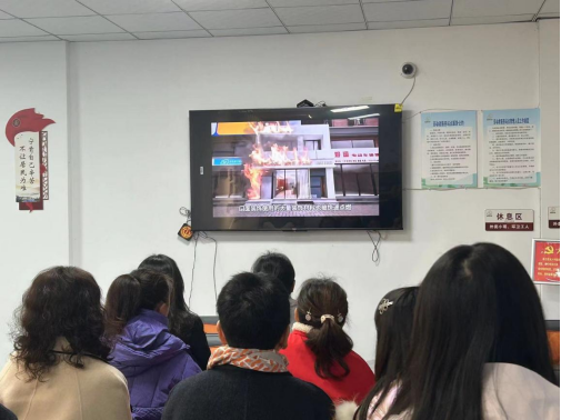 (组织居民观看火灾事故警示教育片)