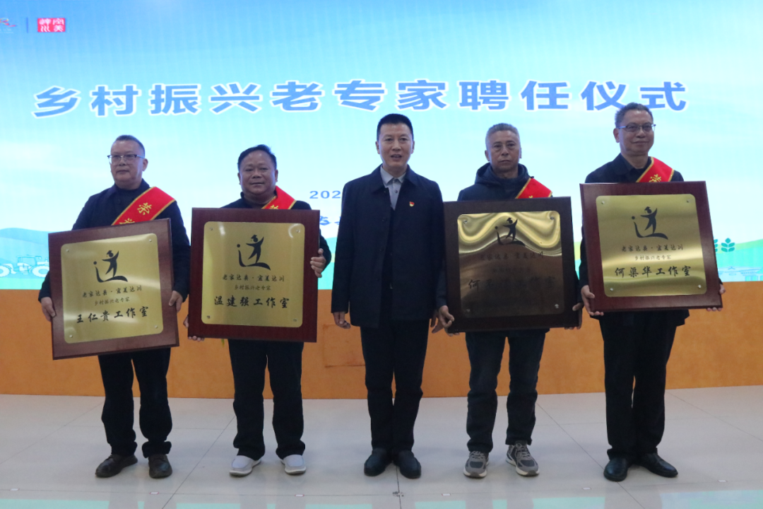 仪式同时举行了乡村振兴老专家聘任签约。达州市委人才发展中心负责人为何渠华、王仁贵、温建强、何丕涛四位老专家的工作室授牌,并向新聘专家表示热烈祝贺。他希望老专家们持续发挥专业特长与经验优势,为农业农村发展建言献策、赋能添彩;同时勉励广大干部职工,特别是青年干部,要虚心学习老同志对党忠诚、服务“三农”的政治品格,爱岗敬业、精益求精的职业精神,以及艰苦奋斗、朴实无华的工作作风,接好历史“接力棒”,在新征程上展现新担当、实现新作为,共同谱写达川农业农村现代化建设新篇章。新聘任老专家代表王仁贵在发言中感谢局党组的信任,表示将珍惜荣誉、不负期望,围绕中心、服务大局,为推进现代农业发展、建设宜美达川贡献智慧与力量。