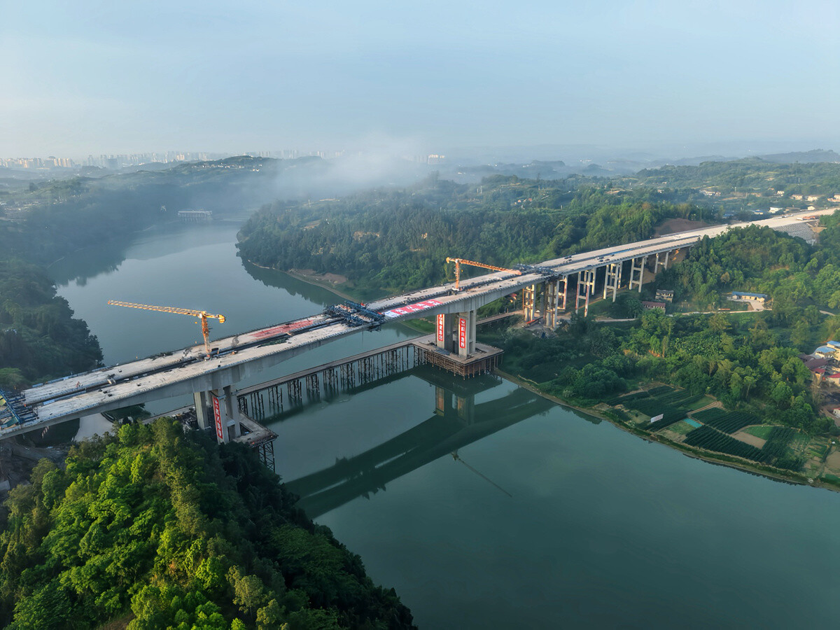 5月25日,铜资高速公路控制性工程——杨柳滩沱江特大桥主桥顺利合龙,为2025年底铜资高速全线通车奠定了坚实基础。图片由受访者提供