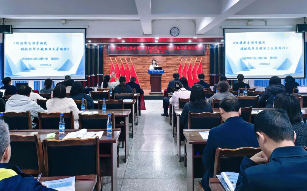 达川区三里小学负责人受邀参会,以《迎接新质课堂挑战 破航教师关键能力发展路径》为题作交流发言,分享学校在教师专业成长与课堂转型中的探索成果,获现场广泛关注与好评。