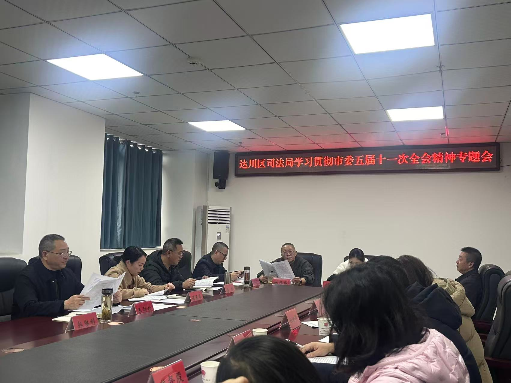 12月10日上午,达川区司法局召开专题会议传达学习市委五届十一次全会精神,安排贯彻落实工作。党组书记王劲松主持会议并讲话,局领导班子成员、机关全体干部职工参加会议。