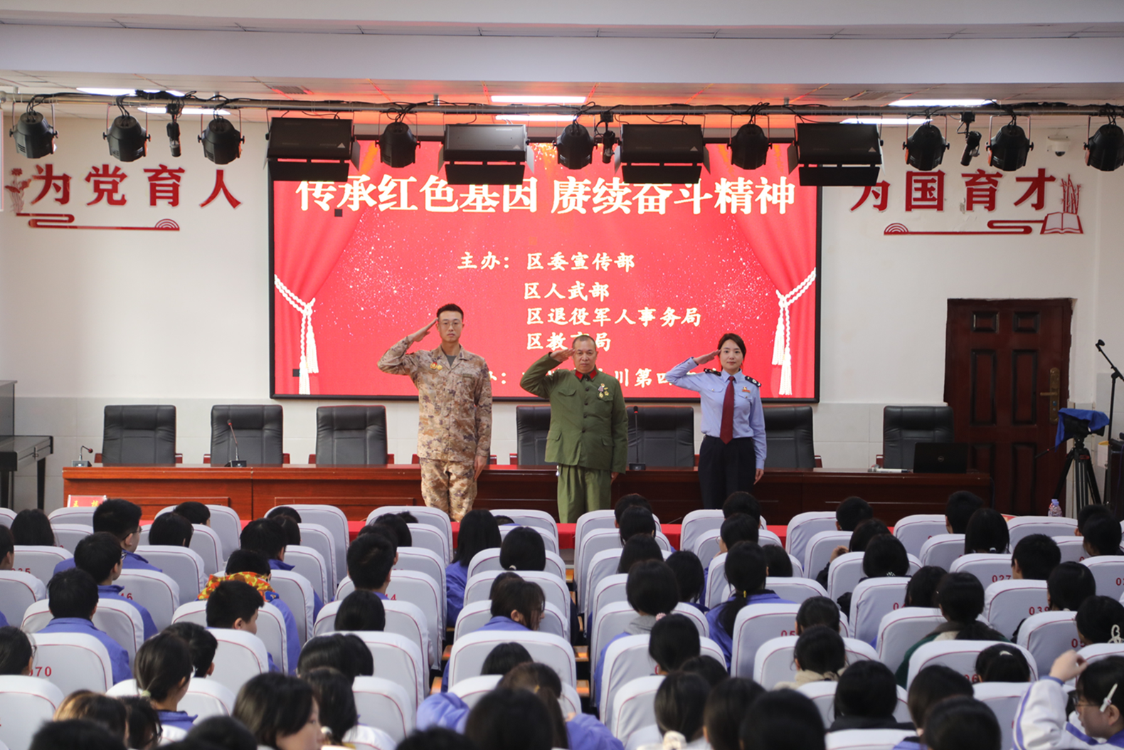 为推动红色基因融入青少年血脉,厚植爱国拥军情怀,增强学生国防意识,12月11日上午9点,达川区“传承红色基因赓续奋斗精神”全民国防教育示范宣讲进校园活动在达川区第四中学隆重举行。本次活动由区委宣传部、区退役军人事务局、区教育局、区人武部联合主办,达川区第四中学承办,相关部门负责人及该校部分师生300余人共同参与,在聆听老兵故事、感悟信仰力量中,拉开了一场生动深刻的国防教育课堂。
