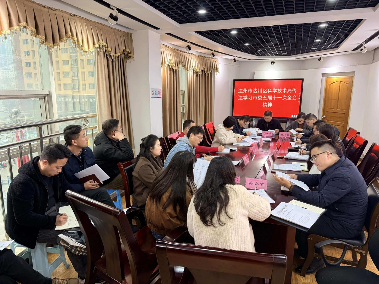 12月9日,达川区科技局召开全体干部职工会议,专题传达学习中国共产党达州市第五届委员会第十一次全体会议精神。
