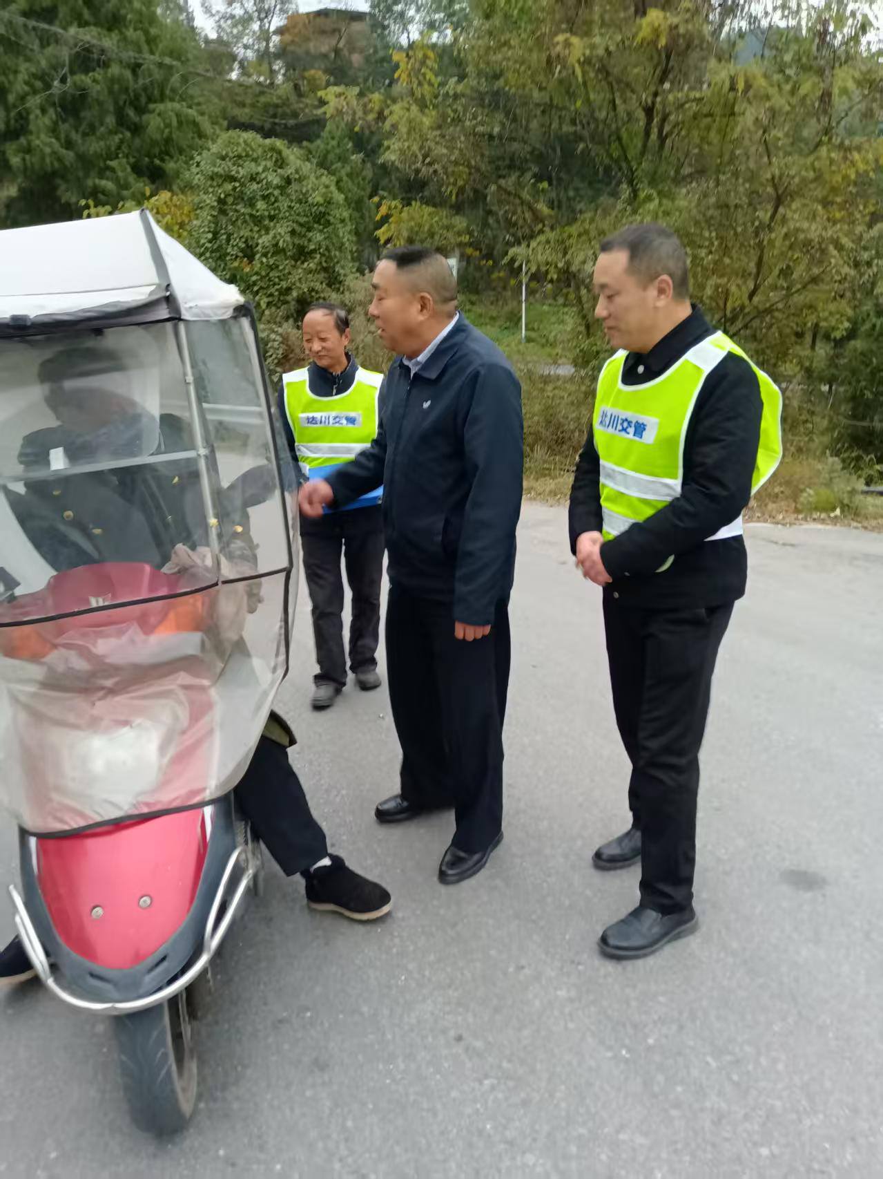 行动聚焦农村道路交通特点,在集市、学校周边、主要路口等车流人流密集区域设立劝导点。工作人员对过往摩托车、电动车、农用车等车辆进行安全提醒与检查,重点针对驾乘人员未佩戴安全头盔、车辆违法载人、不系安全带等常见违法行为进行现场纠正与耐心教育。