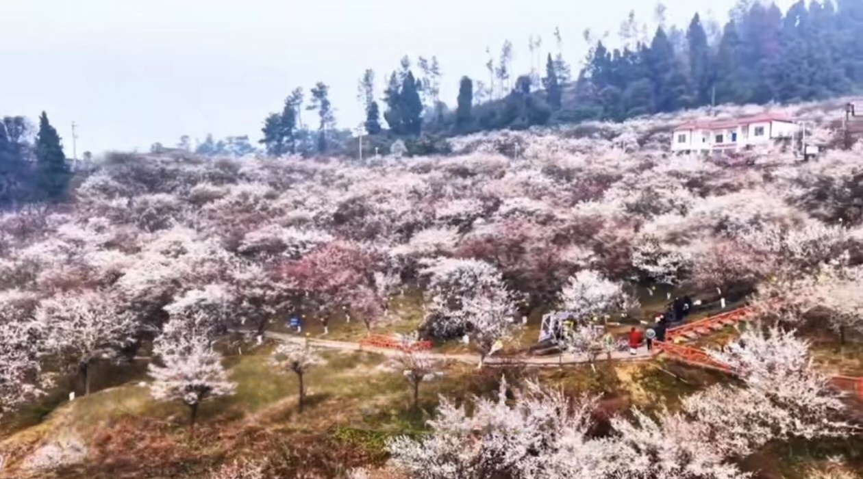 眼下,达川区6.2万亩青梅花迎寒盛放,较往年提前半个月形成漫山花海。这主要得益于当地通过科技育种创新,攻关种植加工技术,串联农文旅业态,走出了一条产业富民的新路。