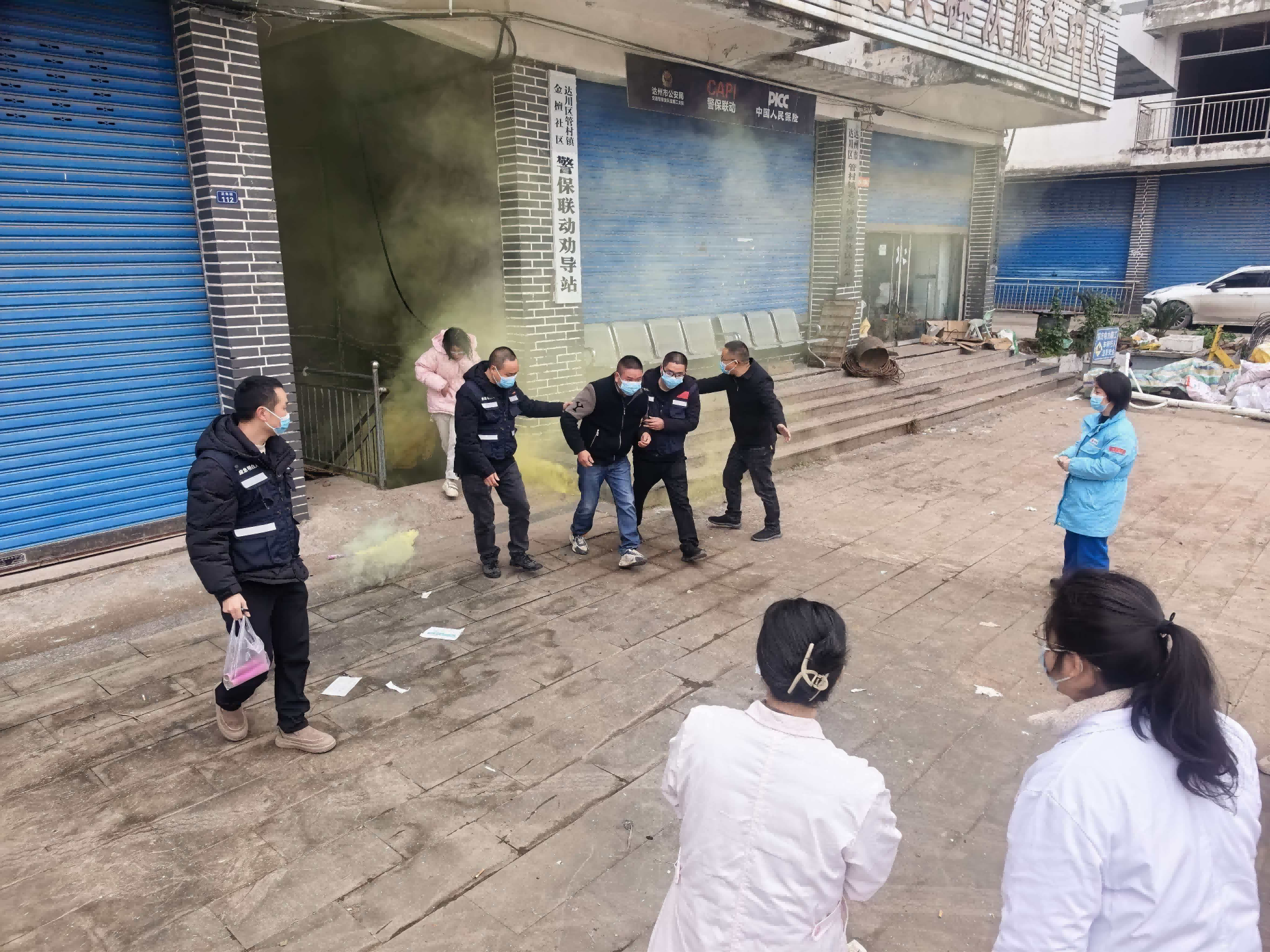 一是疏散逃生模拟。警报响起,模拟民房突发“火情”并产生烟雾,参训人员在引导下迅速捂住口鼻、弯腰低姿,沿预定安全路线快速撤离。过程中,老弱人员得到重点帮扶,全程“不拥挤、不折返”,严格按照疏散路线有序抵达指定安全集合点,迅速完成全员安全集结,有效检验了辖区群众在突发火情下的快速响应与协同配合能力。