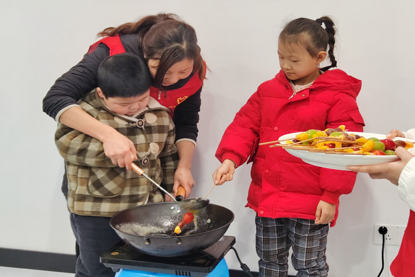 制作过程中,爱心妈妈们耐心协助孩子们串山楂、裹糖衣,小小的山楂果在孩子们的手中,变成了一串串红彤彤、亮晶晶的糖葫芦。孩子们一边认真体验动手的乐趣,一边品尝自己的劳动成果,酸甜的滋味在舌尖化开,传统民俗的独特魅力,也在这亲手实践的过程中,深深印在了孩子们的心里。