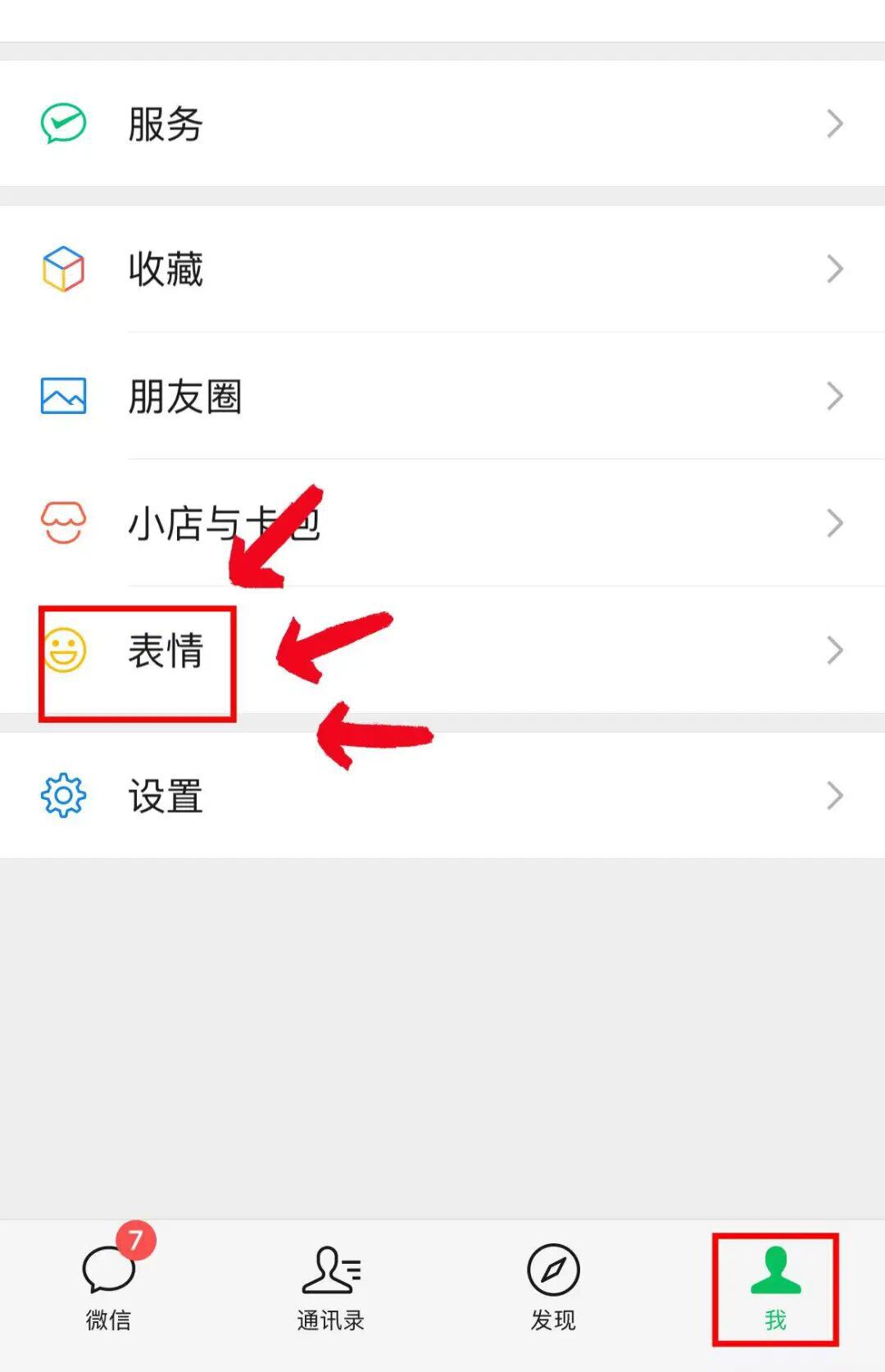 第一步:点击我-表情