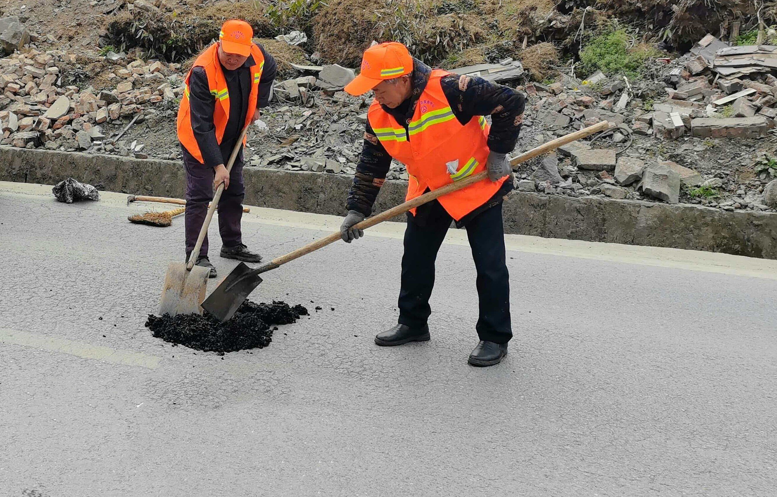 (区公路服务中心对破损路面坑凼进行维修整治)