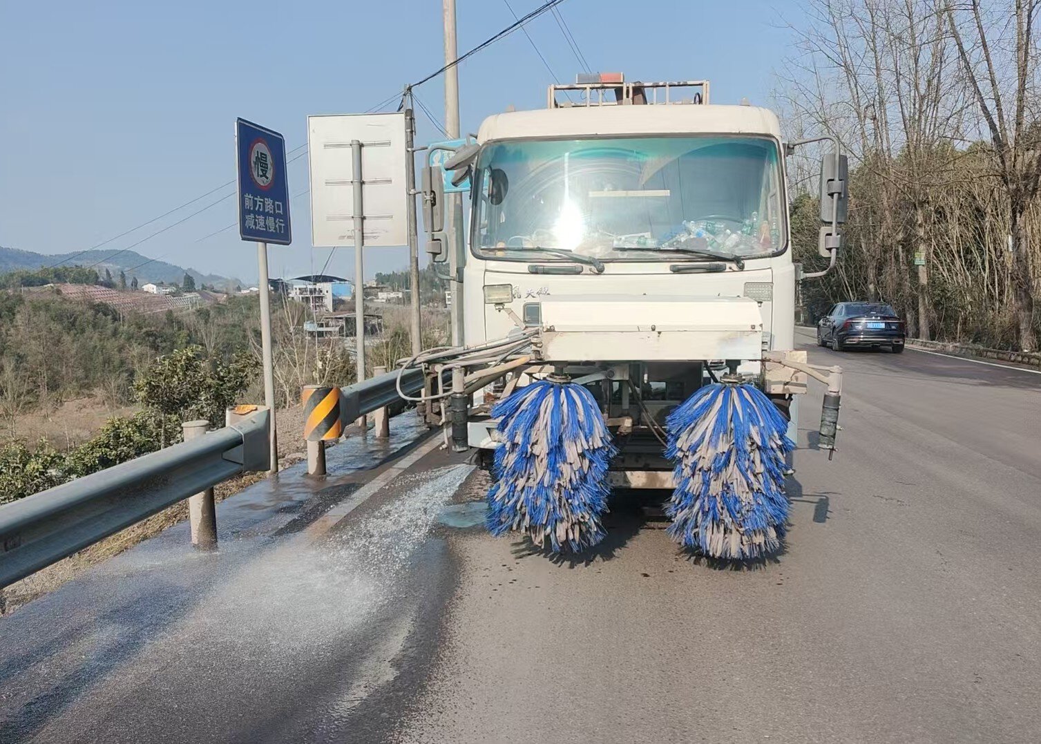(区公路服务中心对农村公路标线、防护栏进行冲洗)