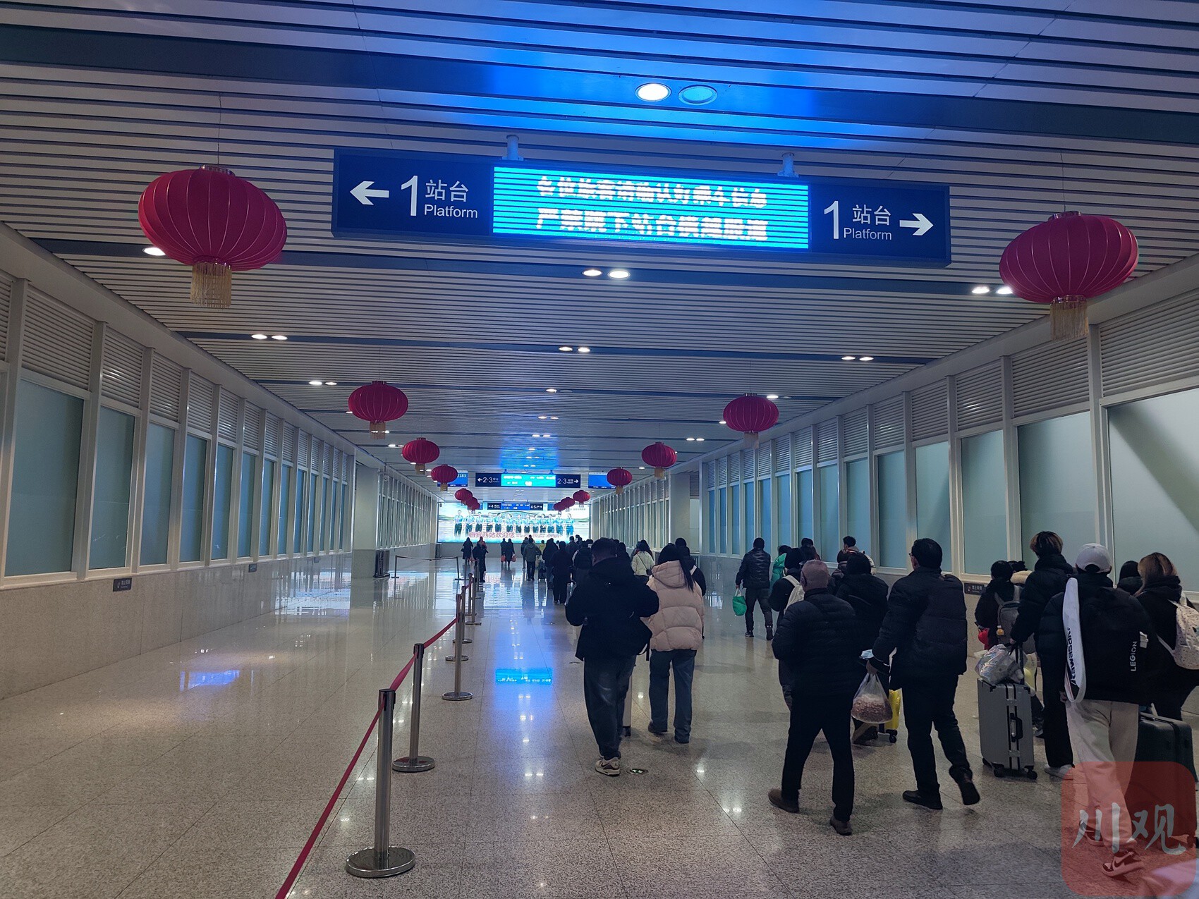 宜宾西站站内挂上红灯笼。