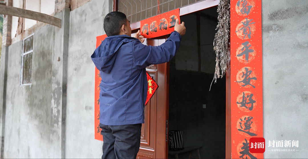 年味漫过川中丘陵。记者沿着村路再次走进射洪市官升镇青果村,刚从广东珠海回川的韩兴海,正在贴春联,而正屋门楣上挂着的艾草已经枯黄。
