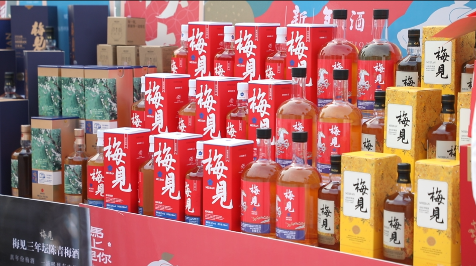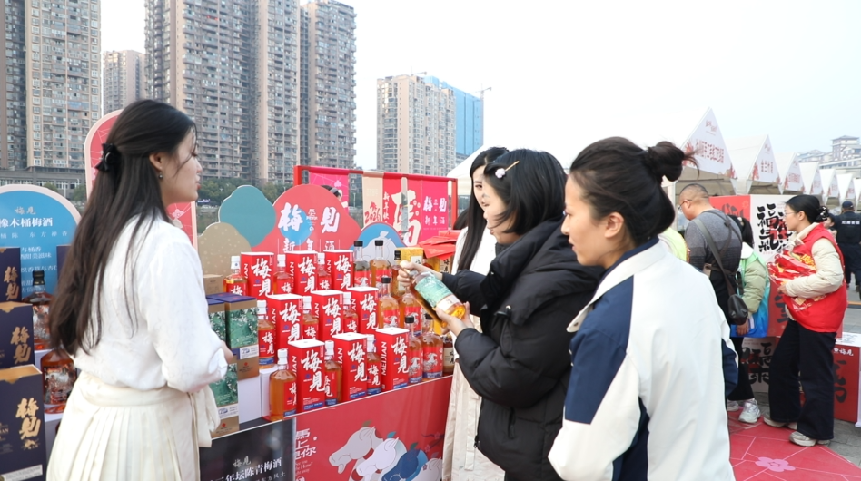活动现场,非遗民俗与品牌文化交相辉映。在梅见酒展区,梅见·石桥火龙酒、梅见·乌梅山文创联名酒正式亮相发布,两款产品深度融合达川非遗文化与文旅地标特色,将石桥烧火龙的千年民俗、乌梅山的生态风光融入设计与内涵,兼具地域辨识度与收藏价值,一亮相就吸引众多市民咨询购买。