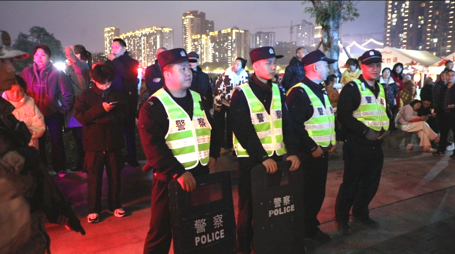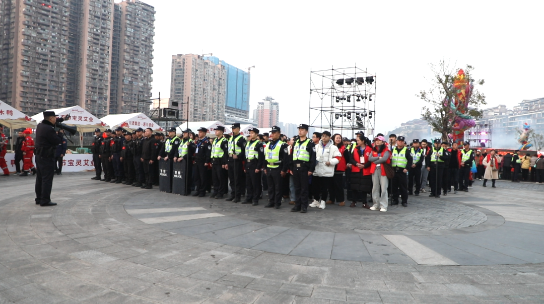 当晚,南滨广场人头攒动,喜庆氛围浓厚,璀璨灯火与热闹人流相映成趣,市民游客齐聚一堂,沉浸式感受巴渠非遗魅力与新春欢乐。为保障活动安全有序进行,达川区提前谋划、统筹安排,由应急救援、公安、消防、社区志愿者等组成的安保力量定岗定责、联动值守,全面排查安全隐患,疏导现场人流,构建起全方位、全覆盖的安全防护网。