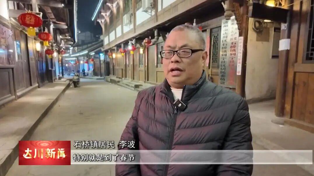 石桥镇居民 李波:这几年石桥变化很大,特别是到了春节,路边的彩灯、灯笼和石桥的红色文化相结合,整条街特别有年味,看着喜气洋洋,带着家人散步拍拍照,感觉特别幸福踏实,我觉得这才是过年该有的氛围和样子。