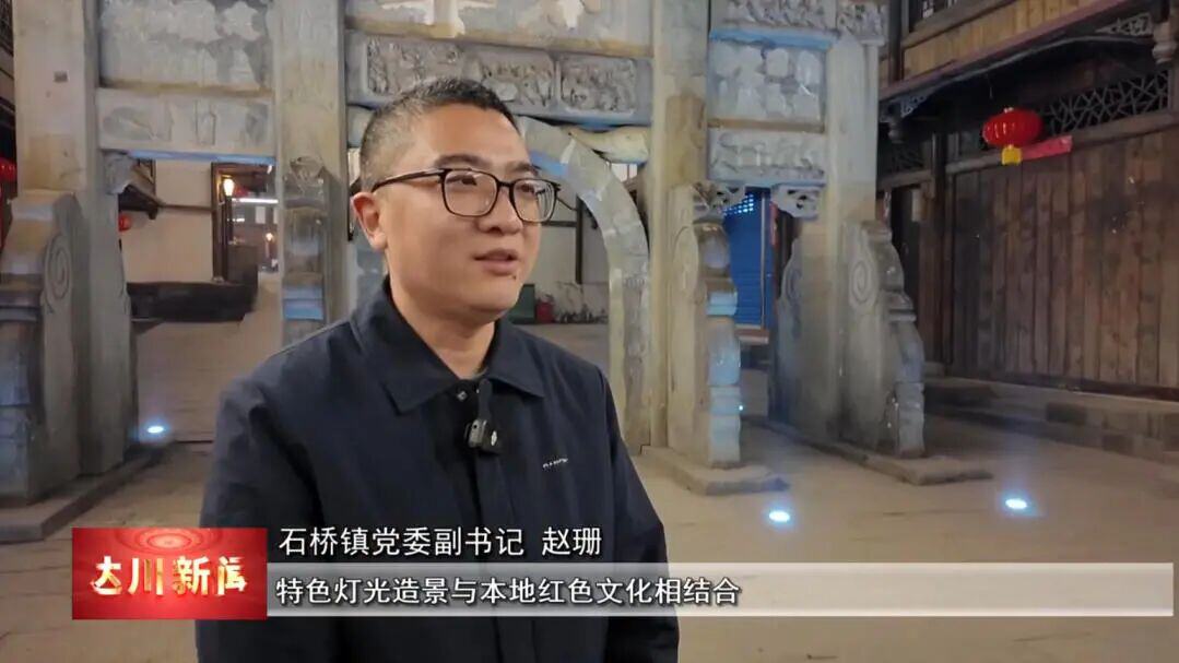 石桥镇党委副书记 赵珊:今年我们将彩灯、特色灯光造景与本地红色文化相结合,突出传统年味,让大家在家门口就能感受到浓浓的春节氛围,也让大家看到石桥镇这几年的发展成果,通过用这种暖心、喜庆的夜景,提升大家的幸福感,让群众和游客度过一个热闹、祥和的新春佳节,也欢迎大家多来石桥逛一逛!