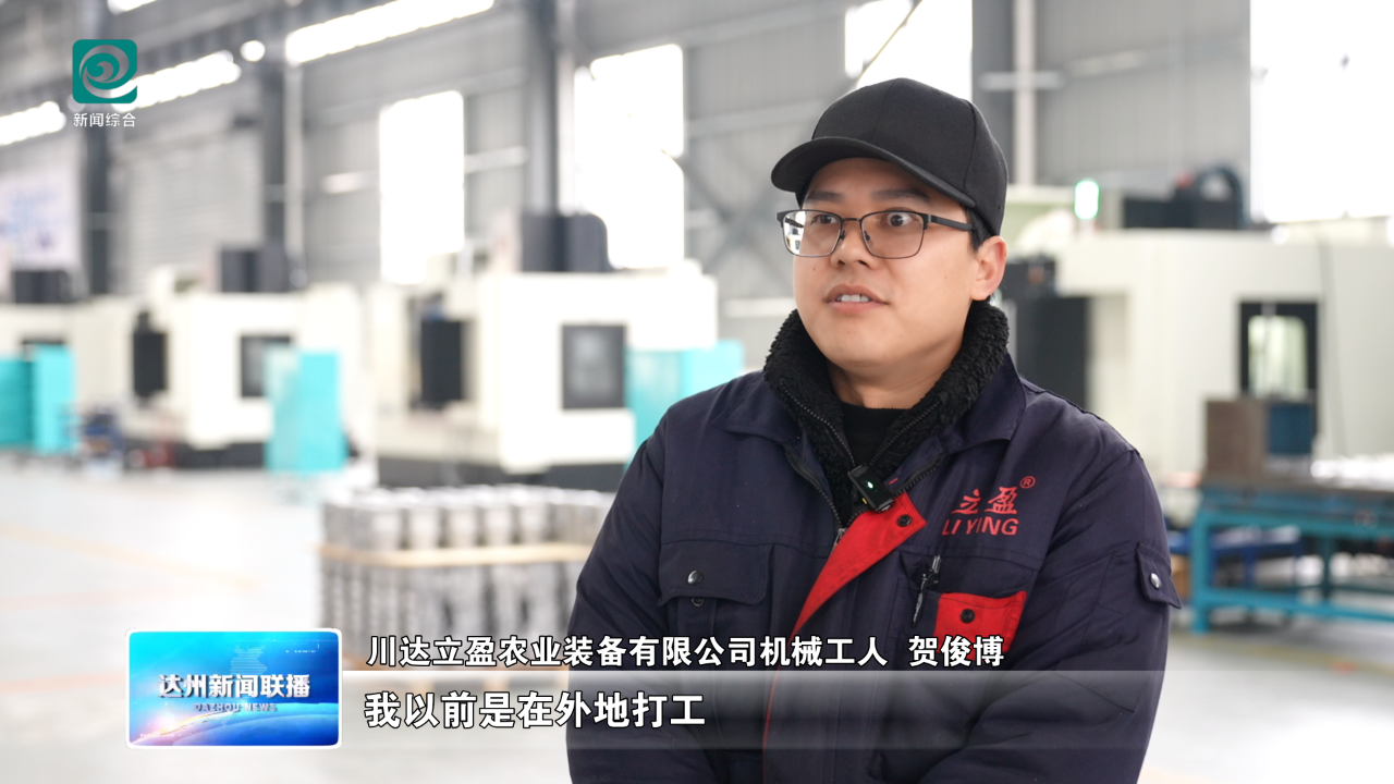 家住达川区百节镇的贺俊博,如今是川达立盈农业装备有限公司的一名机械工人。入职前,他常年在外务工,收入不稳定且无法照顾家人。随着家乡农机产业园建成投产,他第一时间返乡应聘,经企业专业培训后,快速掌握机械加工技术,成为车间技术骨干。
