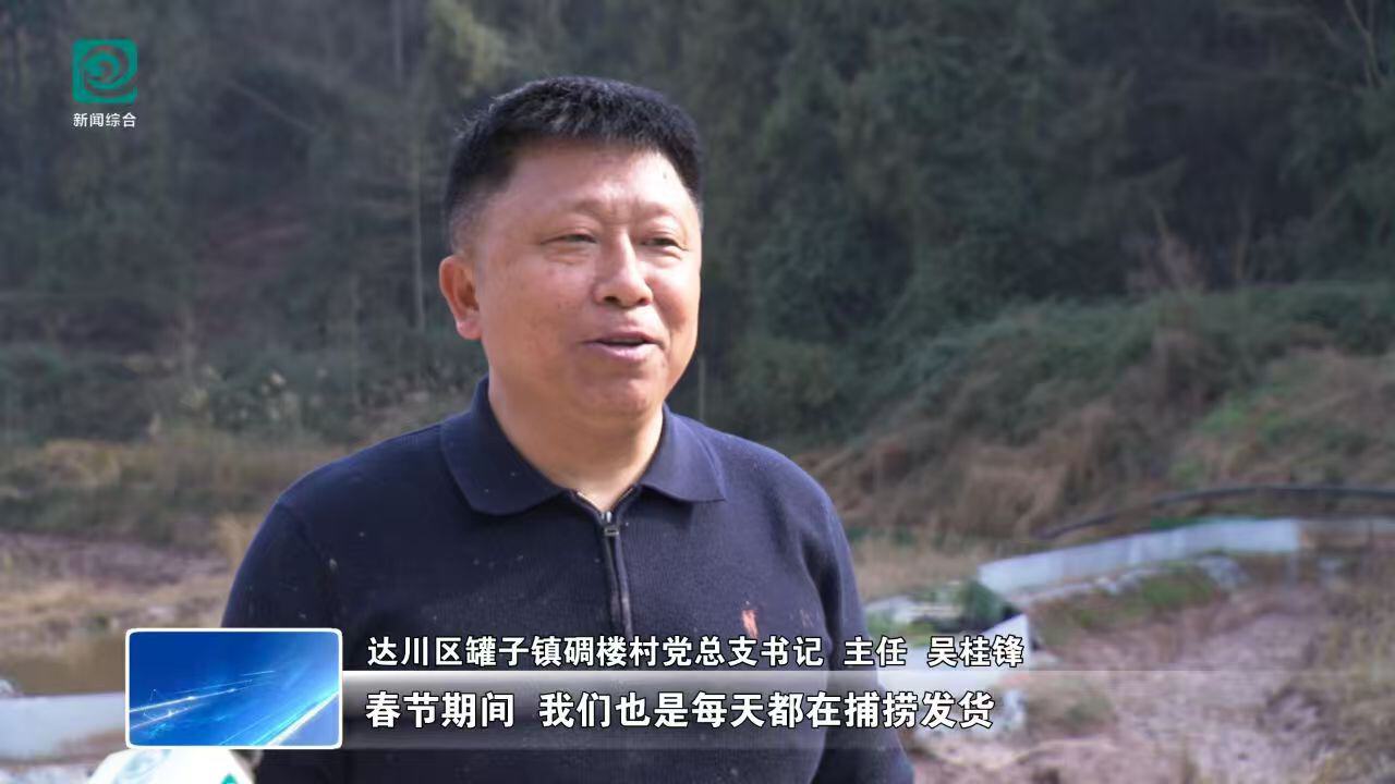 达川区罐子镇碉楼村党总支书记、主任 吴桂锋:我们的订单一直都没有停过,春节前我们就卖了十几万元。春节期间,我们也是每天都在捕捞发货,很多很多达州本地的市民、还有像月子中心这些客户,都在我们这里下了订单。