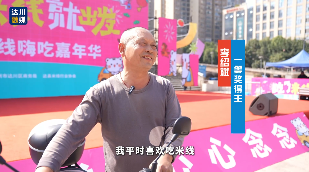 外出务工人员 黄新利:今天特别开心,吃了我们“达县米线”,感觉这个味道很不错,希望我们的家乡发展得越来越好,我们来年也好好挣钱,争取回来把家乡建设得更加美好。