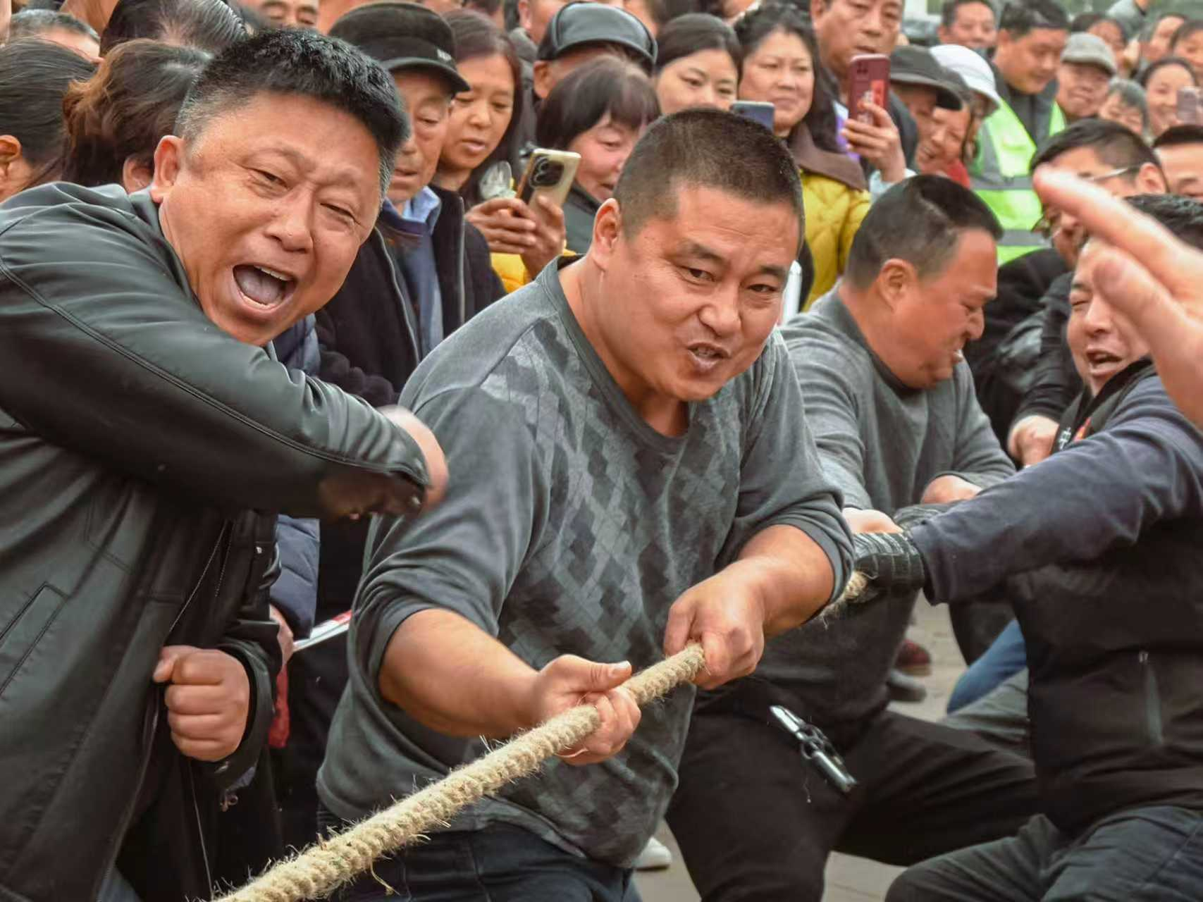 拔河赛场凝心聚力,团结之力震撼人心。随着裁判一声哨响,参赛队员们紧握长绳,身体后倾,青筋突起尽显拼搏本色。队员们心往一处想、劲往一处使,绳子中间的红绸带在两队间来回拉锯,每一次挪动都凝聚着全队的汗水与坚持。年长队员凭借丰富经验稳扎稳打,年轻队员则以爆发力奋勇争先,赛场内外洋溢着团结协作的浓厚氛围。