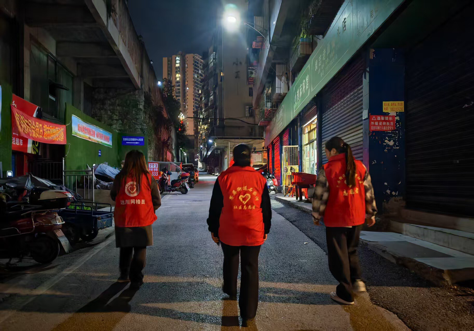 背街小巷,一群群佩戴红袖章、身着志愿者马甲的“守护者”,构成了节日里最令人安心的风景。社区严格按照全区建立的“区级领导包乡镇(街道)、街道干部包社区、社区干部包楼幢(户、关键场点)”三级包保责任体系,将巡查管控责任层层压实到每一个网格、每一位工作人员。今夜,社区干部全员在岗,分片包干,确保门店有人看、小区楼幢有人巡、重点关键点位有人守,形成了严密的责任网络。