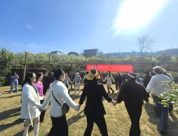 活动设置了蒙眼喂香蕉、爱的抱抱等集体协作游戏。大家手拉手围成圈,在轻松欢快的氛围中完成趣味挑战,在亲近自然中放松身心、增进交流,充分展现了社区女职工团结协作、积极向上的精神风貌,也传递出社区对女性群体的关怀与温暖。