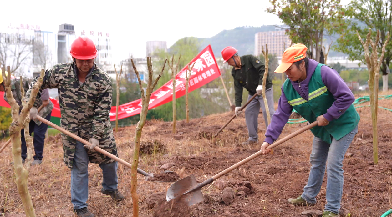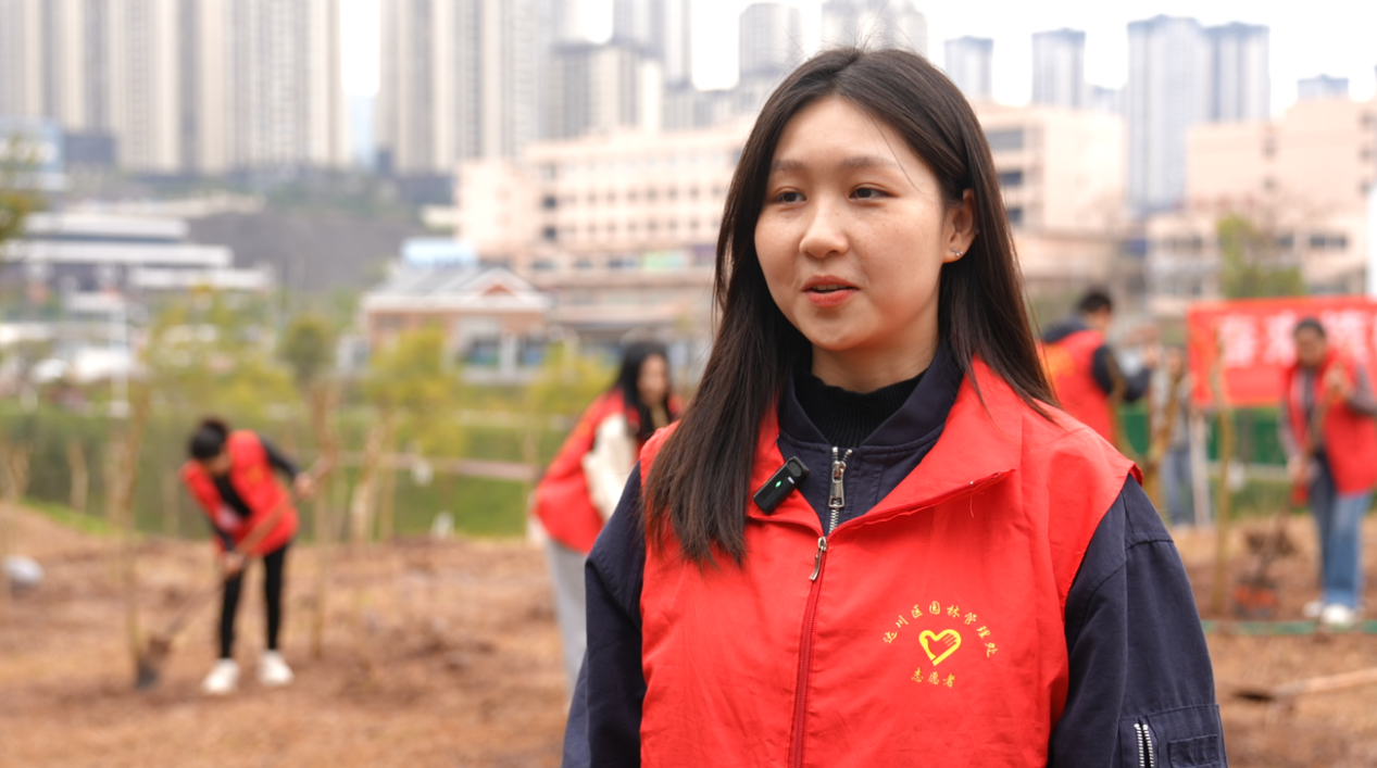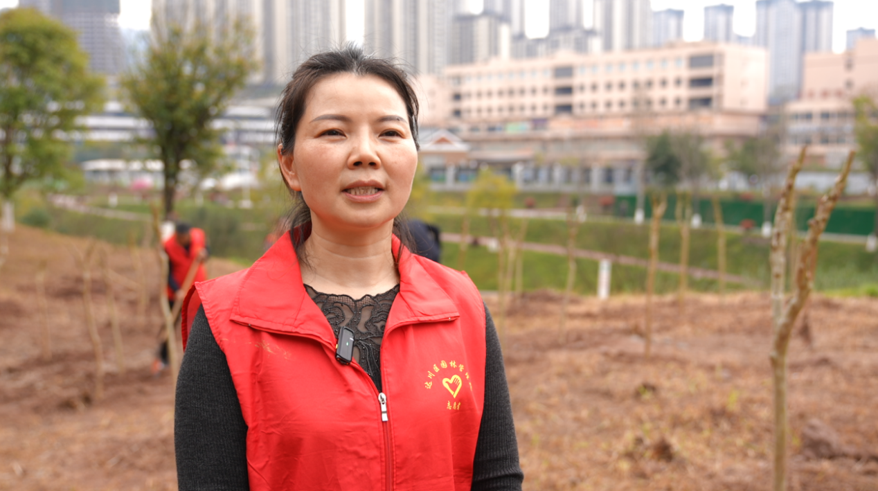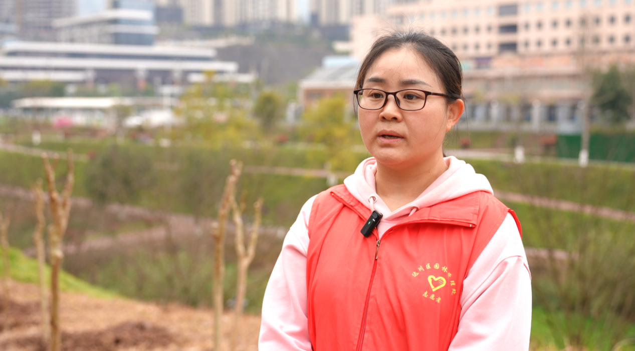 达州市达川区园林管理处职工 李思瑶:今天植树出了一身汗,看着亲手种的树苗特别有成就感,等这些树长大,以后市民来逛公园也会觉得更漂亮、更舒服。