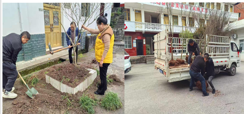 植树活动现场设在镇政府机关大院内外及社区、锤虹村等绿化区域。3月12日上午9时,全体干部职工准时集结,热情高涨、干劲十足。活动中,大家自发形成若干个劳动小组,分工协同完成挥锹铲土、挖坑松泥、植入新苗、灌溉滋养等工作。现场气氛热烈,各组之间自发形成了“比质量、比速度”的娱乐竞赛,200余株红枫、茶花、紫薇等树种,迎风挺立,在春日阳光下焕发勃勃生机。