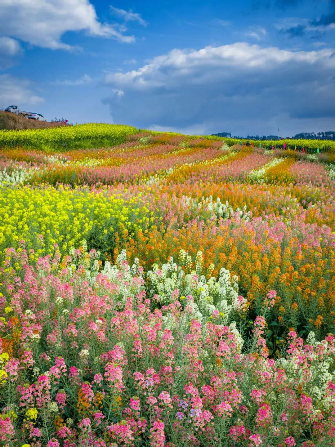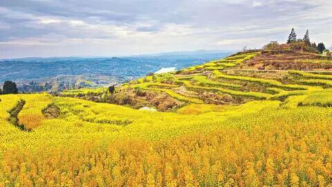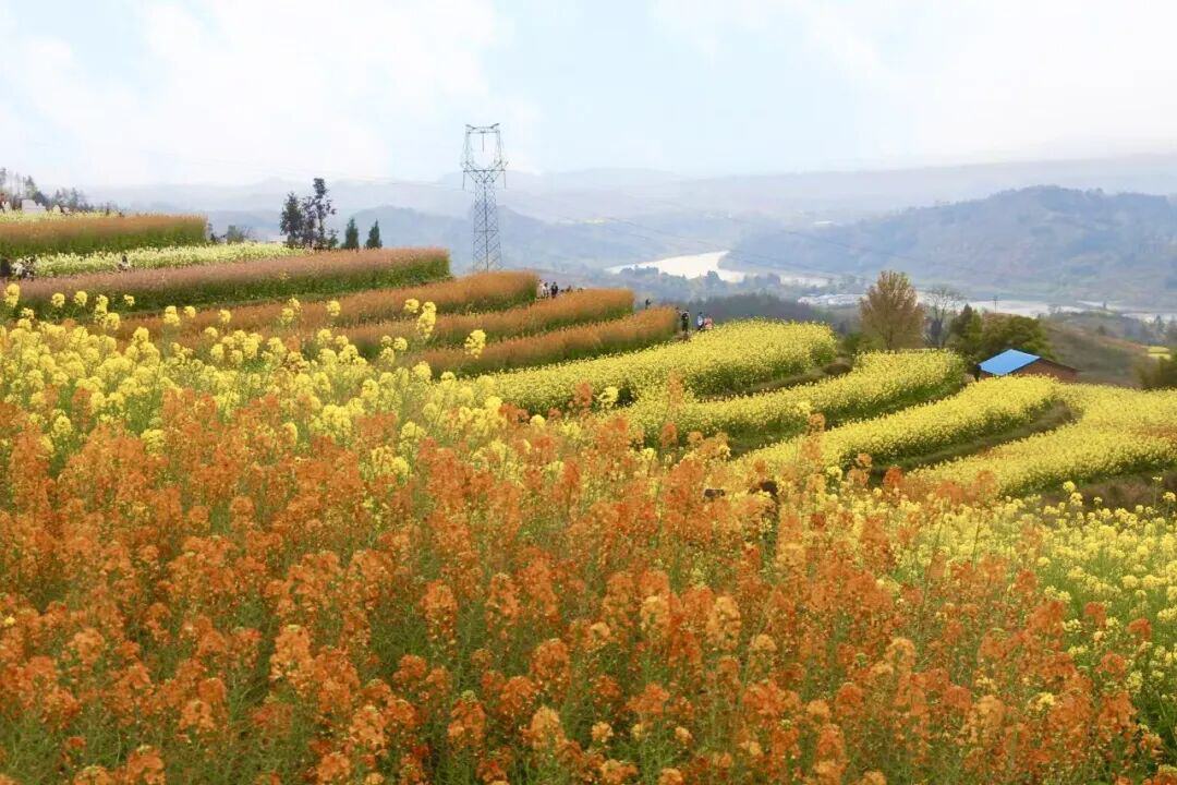 据了解,这片梯田花海并非当地有意打造的旅游项目,而是该村改造撂荒地、选择种植抗旱油菜的意外收获。除了其中的彩色油菜花外,没有刻意地包装和修饰,也没想过起一个高大上的名字,可谓纯“手搓景点”。原生态花海,搭配田埂上长出嫩芽的野菜、山坡上泛绿的树木,山下散落的民居和远处静静流淌的巴河,恰是当下游客厌倦同质化景观后,最为渴望的风景。再加之网络裂变式的传播,龙会这片小小的花海一夜爆红。