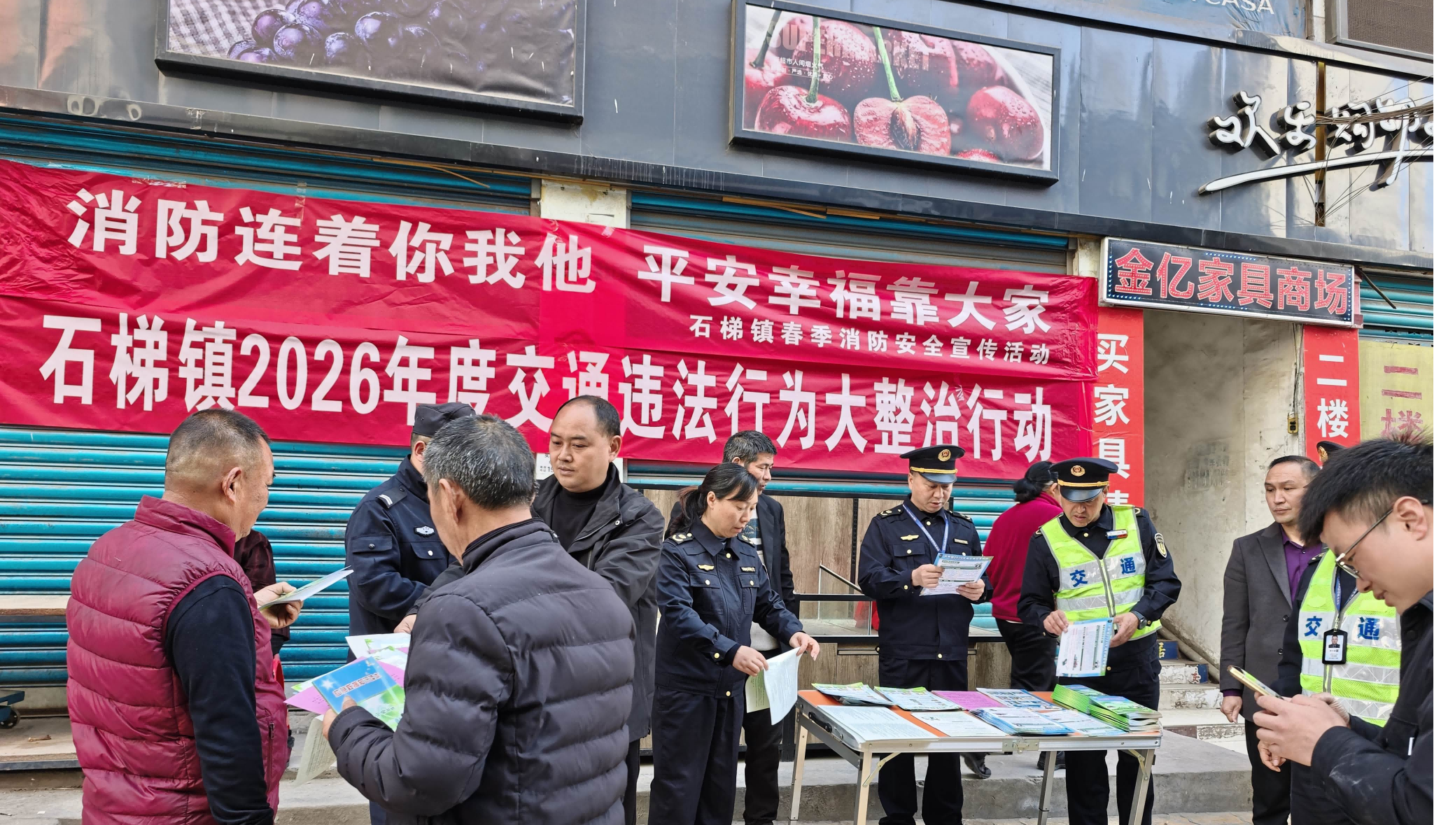 精准宣传落地见效,交通安全入心入脑。结合赶集日人流、车流密集的特点,石梯镇联合区交运局、石梯派出所联合开展交通安全集中宣传活动,把宣传阵地搬到群众“家门口”,让安全知识直达一线。活动现场,工作人员通过发放宣传手册、现场答疑解惑、面对面讲解案例等多种形式,向赶集群众、过往驾驶人重点普及酒驾醉驾、农用车违法载人、骑乘摩托车不戴头盔、驾乘汽车不系安全带等违法行为的危害及法律后果。