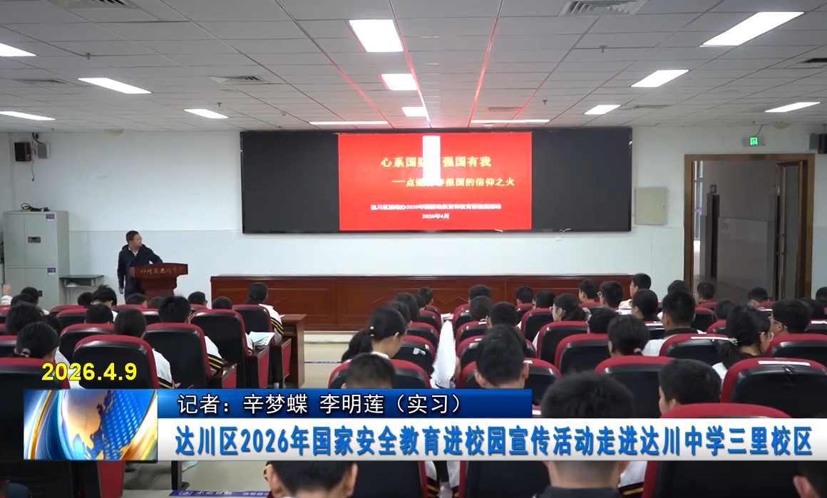 在第十一个全民国家安全教育日到来之际,为深入贯彻总体国家安全观,扎实推进全民国家安全教育宣传走深走实,筑牢青少年国家安全思想根基,4月8日上午,达川区2026年国家安全教育进校园宣传活动走进达川中学三里校区,为在校学子带来一堂沉浸式、趣味化的国家安全教育公开课。