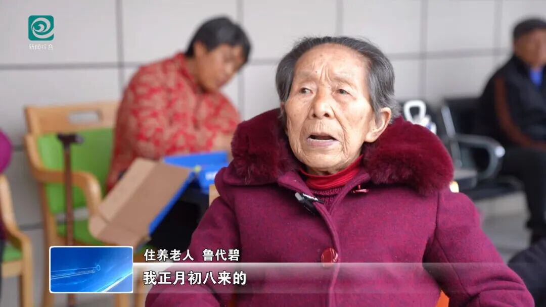 住养老人 鲁代碧:我正月初八来的,(护工)随时喊随时到,给我换得干干净净。在这里,三顿饭吃得匀匀净净,身体脸色都好了。