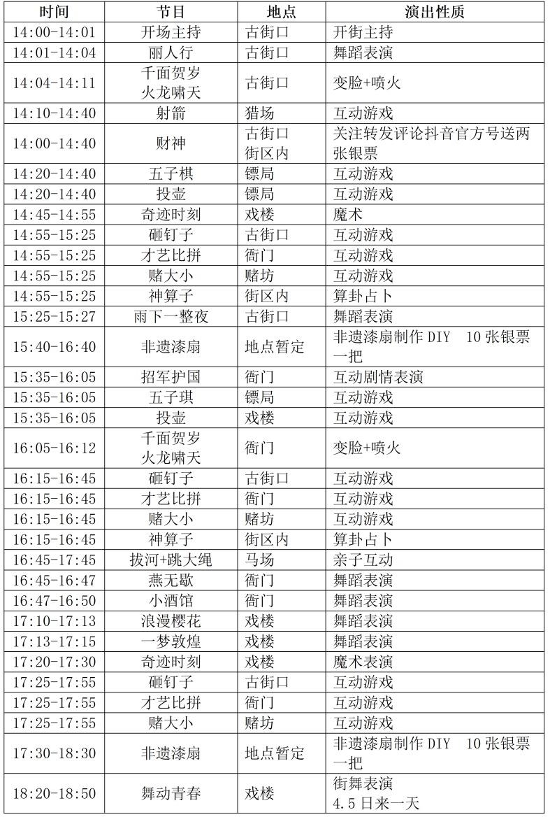 14:00起,古街口开街主持、《丽人行》舞蹈、变脸喷火《千面贺岁 火龙啸天》,氛围感拉满!
