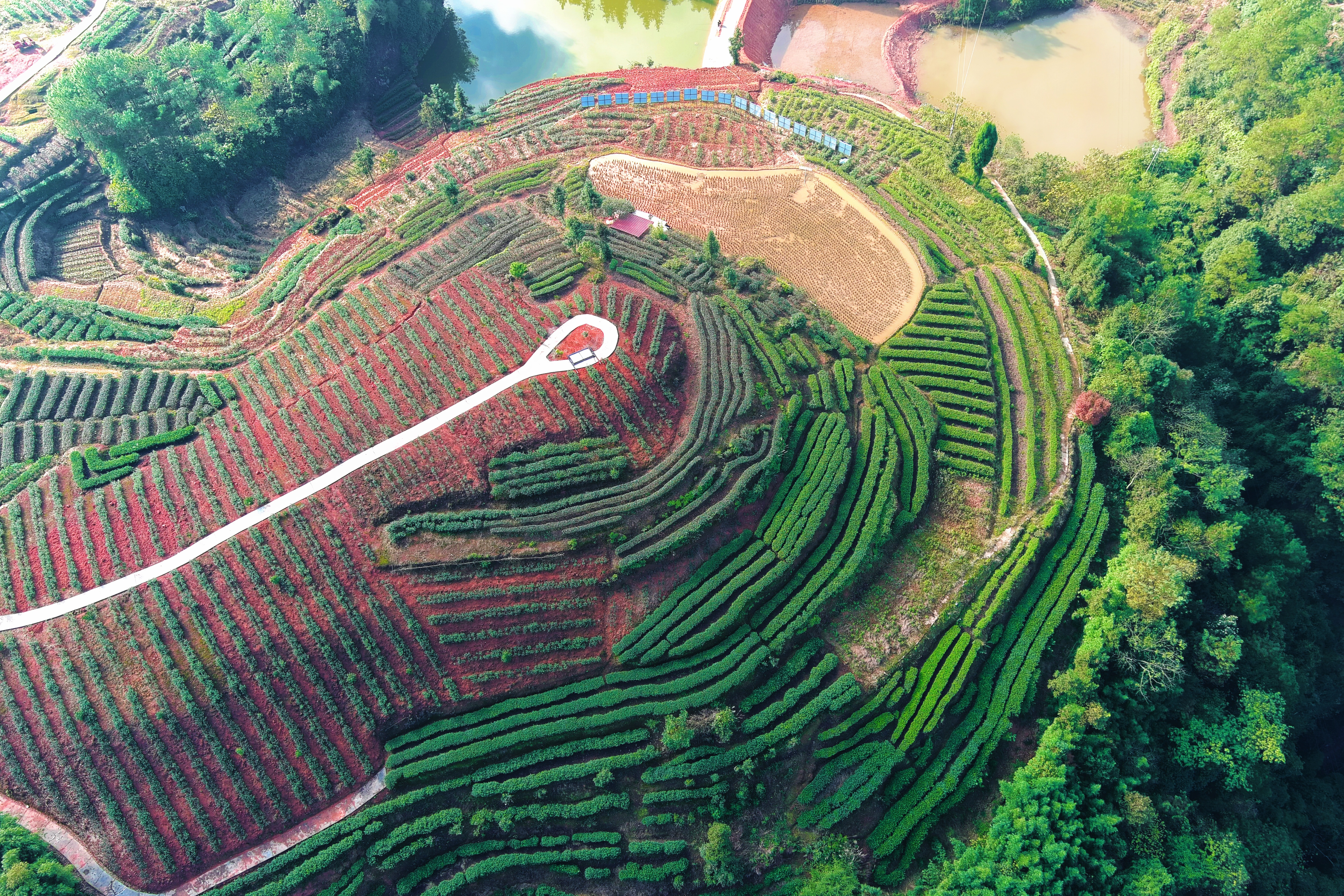 福善镇地处县境西南部,属典型川西南季风气候区。这里分布着富顺县唯一的丹霞地貌,地表赤壁丹崖,土壤由微量红土矿物和酸性有机物质混合形成,保水性和通气性良好,加之适宜的海拔和光照,成为优质茶叶的理想产区。近年来,福善镇党委、政府在县委、县政府的领导下,将茶产业作为乡村振兴的支柱产业来抓,采取“一二三”产融合发展模式,以周安村“四合香茶”为核心区,周村、阳升村为提升区,辐射带动菜子村、大峡口岩区为扩面区,形成“一园多区”的阶梯发展格局。截至目前,全镇茶叶种植面积已达1.2万余亩,今年力争突破2万亩,实现亩均产值6000元。