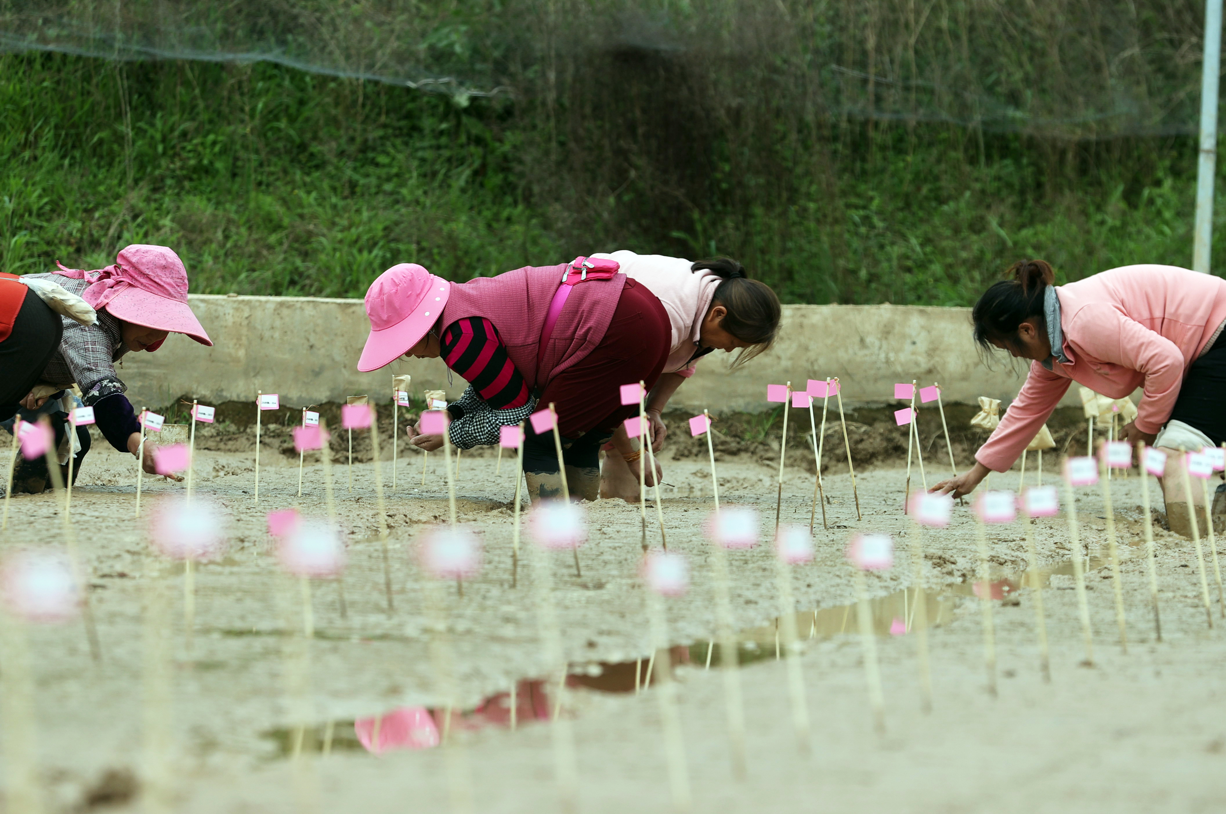 王家贡米科研育种试验示范基地里,王家贡米产业技术研究所首席专家陈定全俯身指导工作人员精准点播,一边细心地将稻种轻按入土,一边叮嘱:“一定要把种子按实、贴紧土壤,才能更好吸收水分、顺利出苗……”这是陈定全从海南南繁归来后的首次直播播种。这些跨越千里的珍贵育种材料,将在卫子镇安家落户,开启新一轮良种攻关。