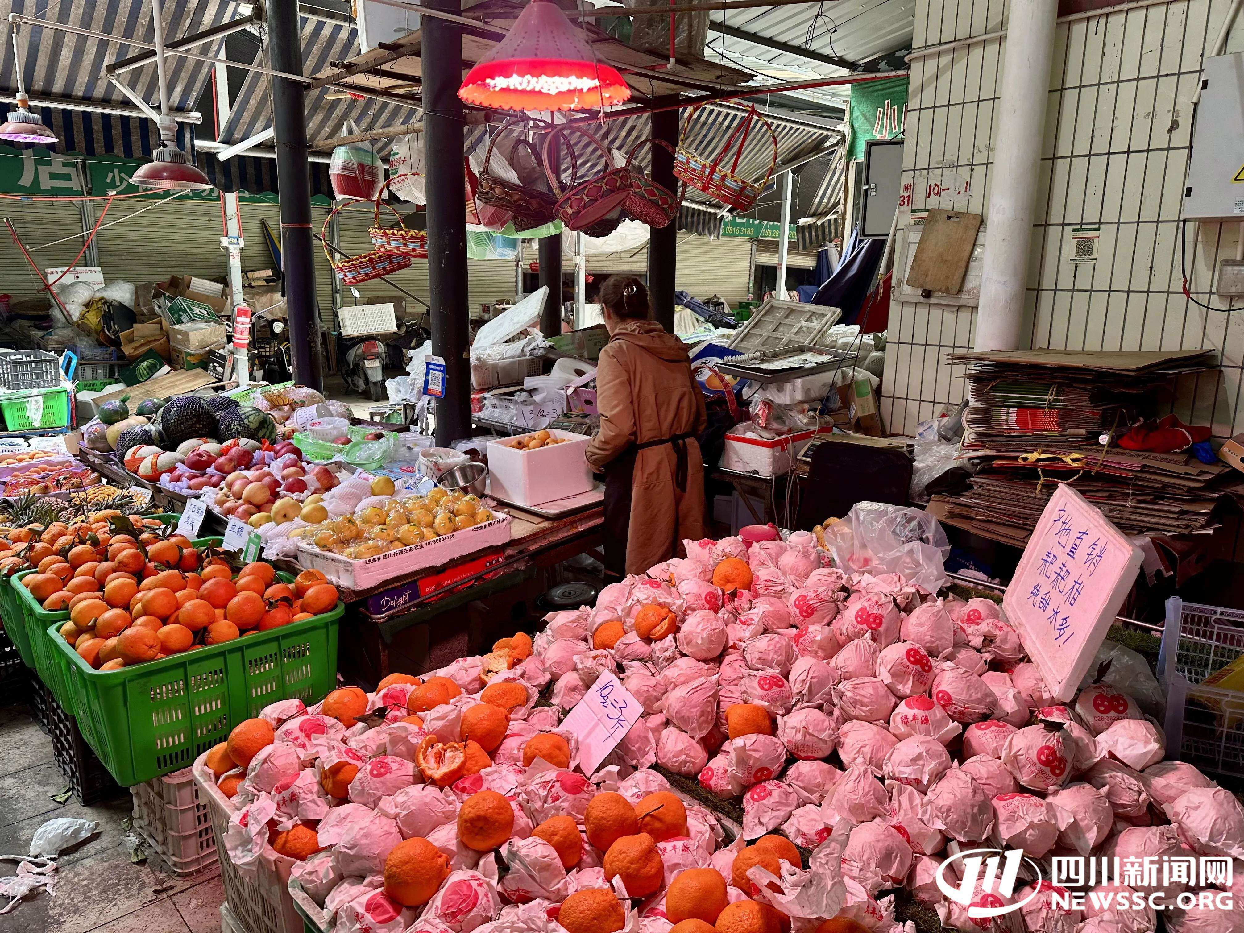 近期,成都耙耙柑、枇杷集中上市,个别水果摊位使用暖色调生鲜灯,将果实映得色泽鲜亮、偏深橘红,容易吸引市民选购。