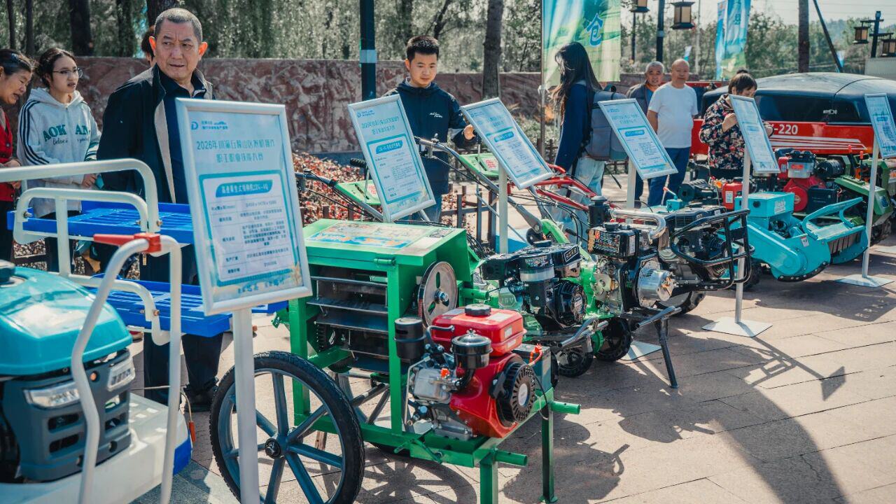 4月16日—17日,2026年川渝丘陵山区农机操作职工职业技能大赛期间,赛场之外的丘陵山区农机装备展示区同样人气高涨。30台达州生产的“四川造”农机整齐列阵、亮相助阵,并同步开展现场试机演示,成为来自川渝两地客商和参赛选手关注的焦点。