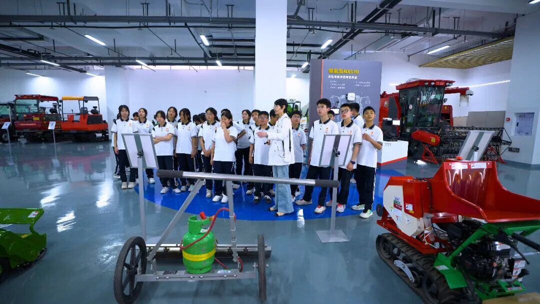 下午,研学队伍来到丘陵山区现代农林装备产业园。在生产展示车间,讲解员为同学们详细讲解智能农机装备的功能特点与应用场景,展示现代农业生产的高效与便捷。同学们认真聆听讲解、积极互动交流,近距离观察农机设备,直观感受科技赋能现代农业的强大动力,进一步激发热爱家乡、关注农业、投身乡村发展的青春热情。